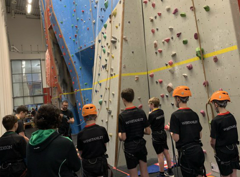 Pictured here are students are the climbing club ‘learning the knots before getting up the wall’.